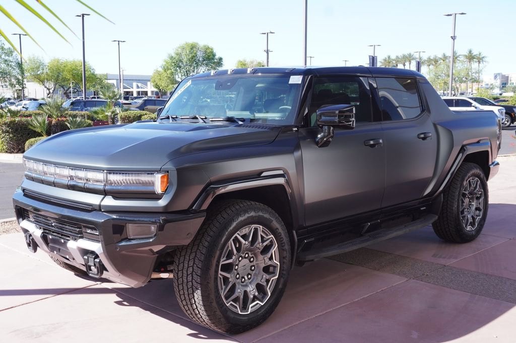 Equipped with a CUSTOM vinyl black wrap to give this already unique vehicle an even more personal look! Experience The Difference At Coulter Tempe. Tempe Autoplex - i-10 and Elliot Road. Proud to be part of the Coulter Automotive Group - serving Phoenix since 1923. Void Black 2025 GMC Hummer EV Pickup 3X 4WD 1-Speed Automatic Electric Motor