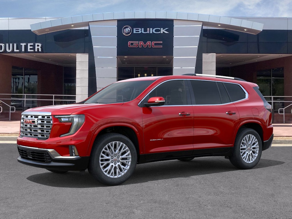 Experience The Difference At Coulter Tempe. Tempe Autoplex - i-10 and Elliot Road. Proud to be part of the Coulter Automotive Group - serving Phoenix since 1923. Volcanic Red 2026 GMC Acadia Denali FWD 8-Speed Automatic 2.5L DOHC FWD, After Dark Leather.Recent Arrival! 20/26 City/Highway MPG