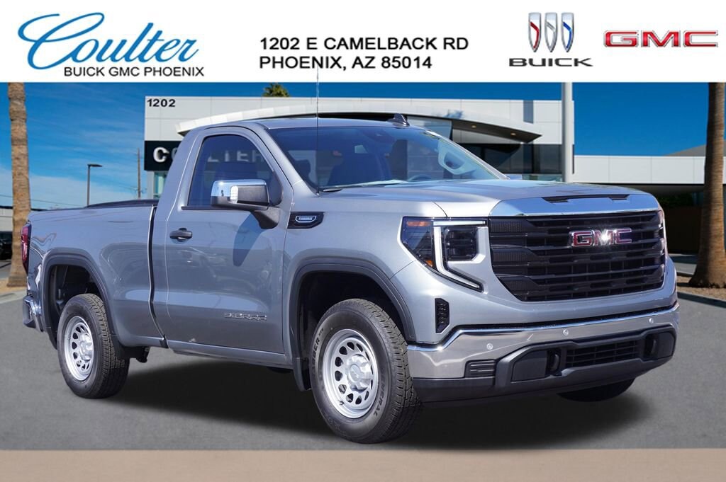 Coulter Phoenix has sold Cadillac's in Arizona since 1923. Shop Coulter - Trust Coulter. 2026 GMC Sierra 1500 Pro Sterling Metallic 2.7L I4 Turbocharged DOHC 16V LEV3-SULEV30 310hp RWD 8-Speed Automatic 18/21 City/Highway MPG YEAR MAKE MODEL, LOW MILES, MILES ONLY, 8-Speed Automatic, Jet Black Vinyl.